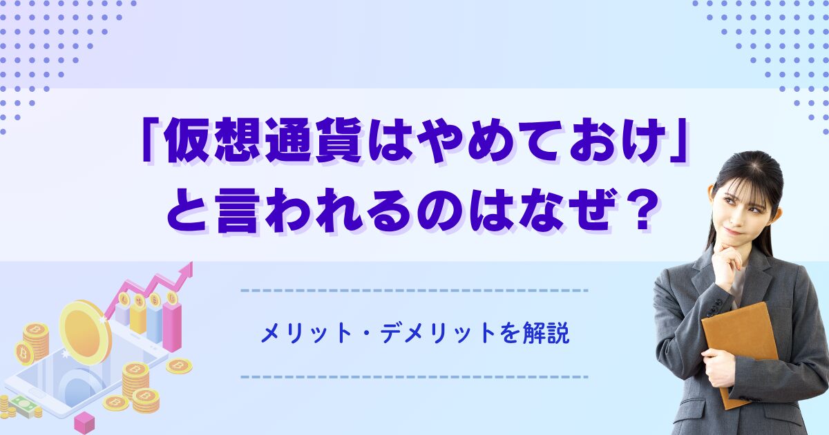 この記事では、仮想通貨がやめとけといわれる理由やメリット・デメリット、向いている人・向いていない人の特徴を紹介する。